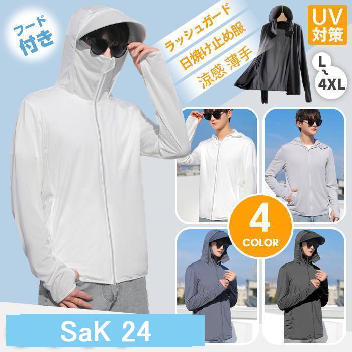 ラッシュガード メンズ トップス 長袖 カーディガン フード付き 涼感 シンプル UVカット 日焼け止め服 薄手 涼しい 夏 自転車 紫外線対策 軽量 UV対策 海 ゴルフ 旅行
