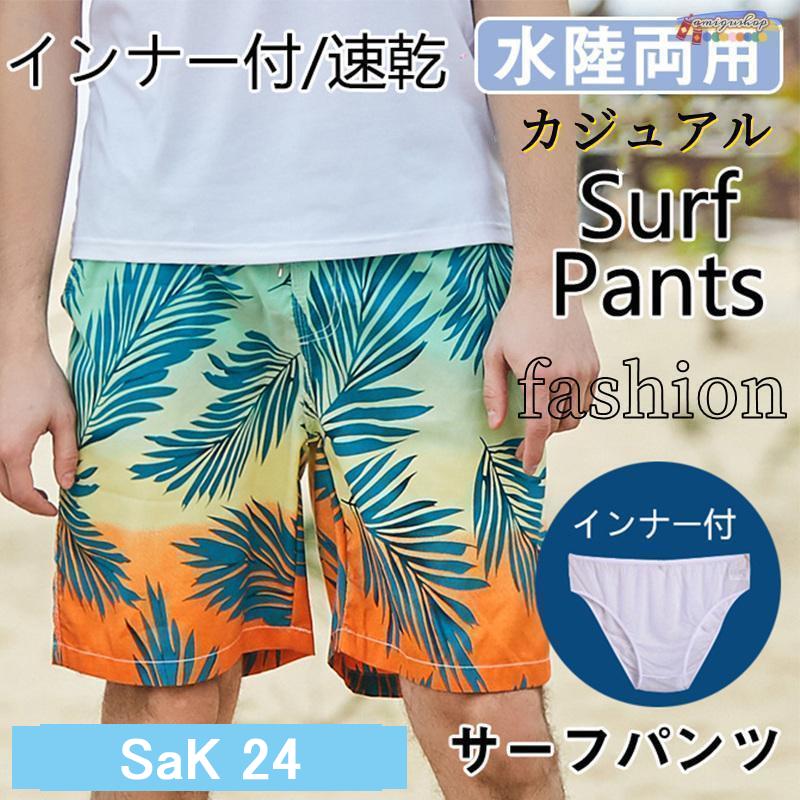 水着 メンズ サーフパンツ 花柄 水陸両用 軽量 速乾 海パン インナー付 海水パンツ ショートパンツ 無地 アロハ 夏物 短パン 大きいサイズ