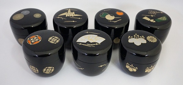 茶道具 棗 中棗 七宝 扇面 高台寺 黒 朱 溜 樹脂製 化粧箱