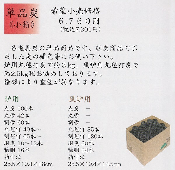 茶道具 炭 単品炭 小箱 風炉用 ボール箱