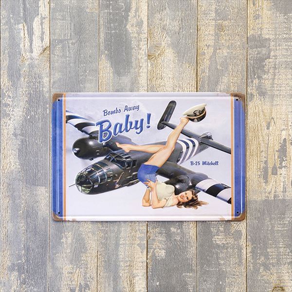 レトロな飛行機とピンナップガールのサインプレート