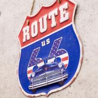 ブリキ看板 アメリカン雑貨 アンティーク ダイカット ROUTE66