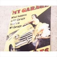 レトロなアンティークカーとピンナップガールのサインプレート★