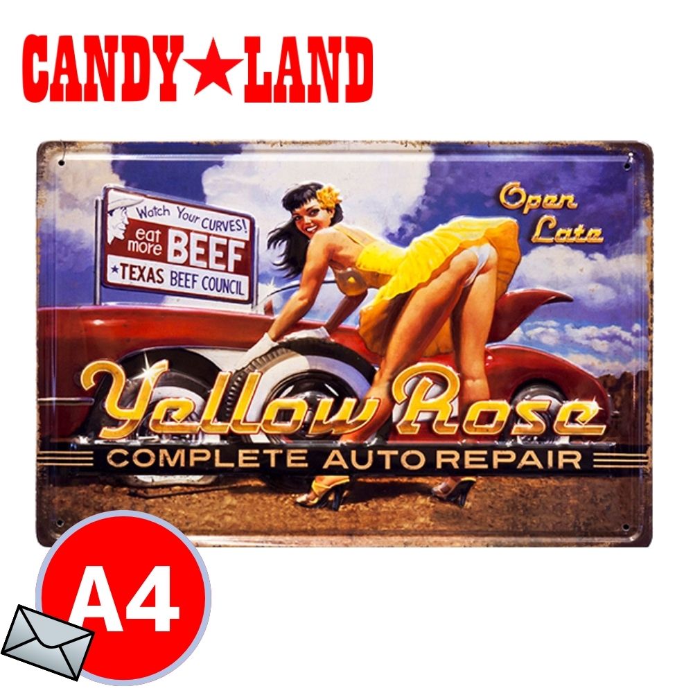 ブリキ看板 アメリカン雑貨 アンティークメタルプレート Yellow rose Z123 ヴィンテージ ピンナップガール アメリカ 雑貨