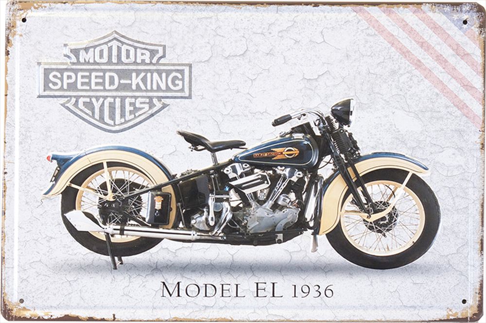 1936年のクラシックバイク「モデルEL」を描いたレトロなアメリカンバイク看板。