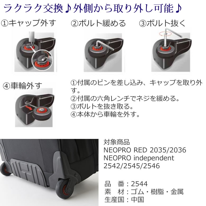 キャリーバッグ専用 キャスター交換 キット 2542,2545,2546 対応 neopro 贈り物 買い物 爆買