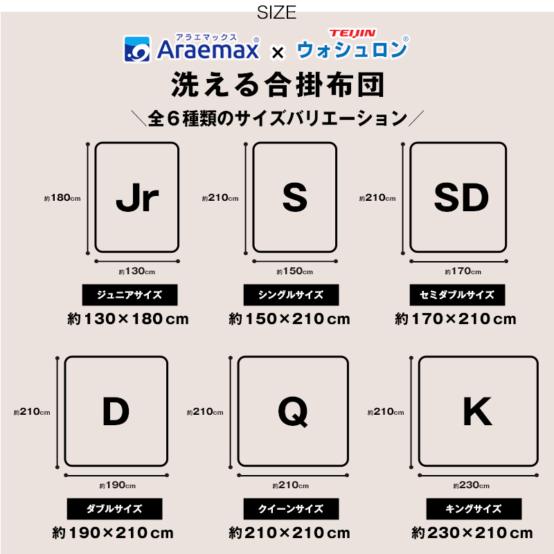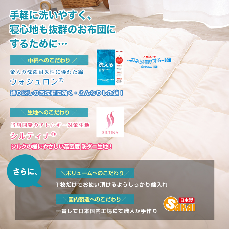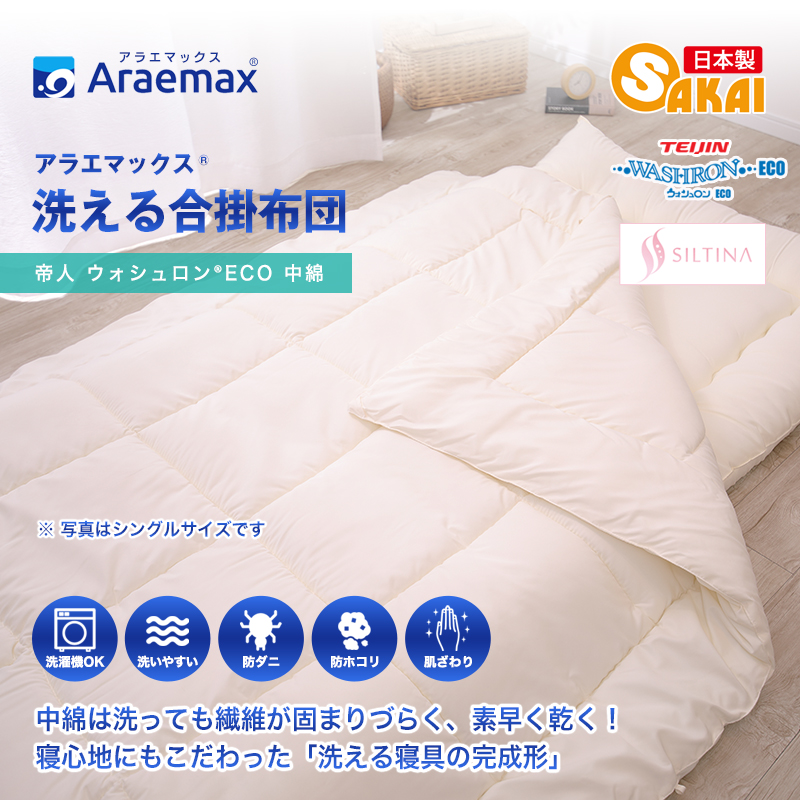 ウォシュロン中綿使用 洗える合い掛け布団 セミダブル サイズ 爆買