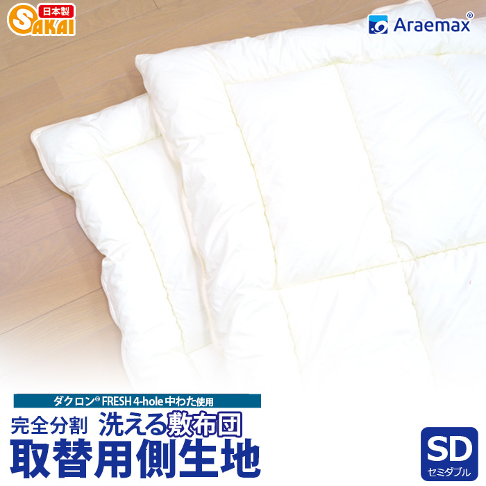 【上下側生地のみ】ダクロン(R)FRESH 4-hole(4穴)中わた使用 完全分割 着脱式 洗える敷布団用 上層・下層 中綿部分のみ セミダブルサイズ(120×205cm) 爆買