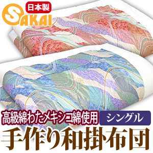 【日本製】高級綿わた メキシコ綿使用 手作り 高級綿ふとん和掛け布団(和布団) シングルサイズ