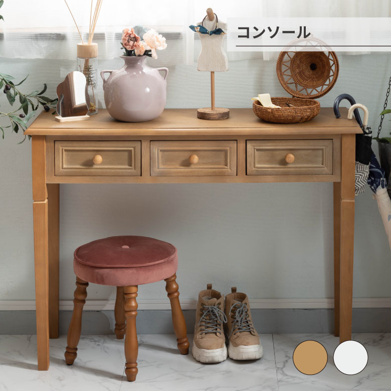 コンソール テーブル リビング 玄関 寝室 化粧台 作業台 スリム 奥行33cm 木製 天然木 桐 アンティーク 北欧 引き出し ストッパー付き 軽量