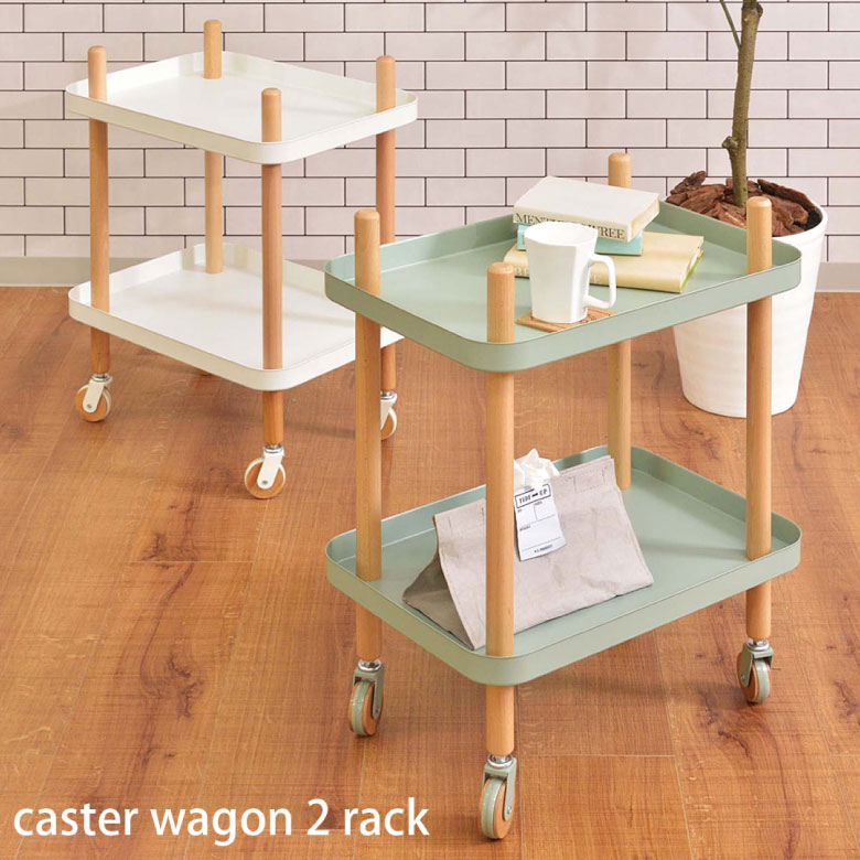 ワゴン 2段 2D マルチワゴン キッチンワゴン サイドテーブル ナイトテーブル ベッドサイド キャスター トレー 木製 天然木 北欧 ナチュラル シンプル かわいい 収納 収納棚 棚 ラック マルチラック オープンラック ホワイト グリーン