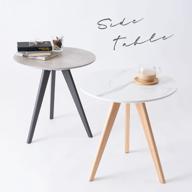 ラウンドサイドテーブル 大理石調 大理石 韓国インテリア シンプル おしゃれ スタイリッシュ 直径50cm 丸テーブル テーブル サイドテーブル 机 つくえ 韓国
