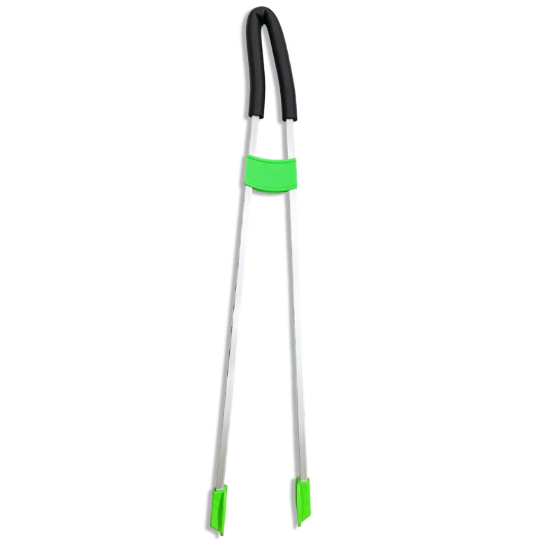 ●かがまずにラクにつかめる軽量トング。
