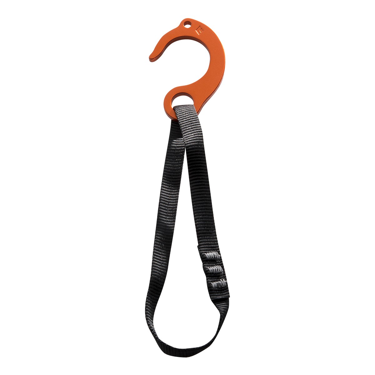 エイドクライミング用のフィフィ。アルミ合金製でナイロンスリング付。体重を支える以外の使い方はできません。