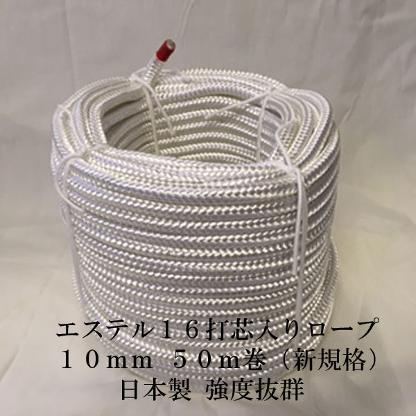 SKMエステルロープ 白 10mm 50m巻 ダブルブレイド 16打 強度抜群 マリン用 日本製