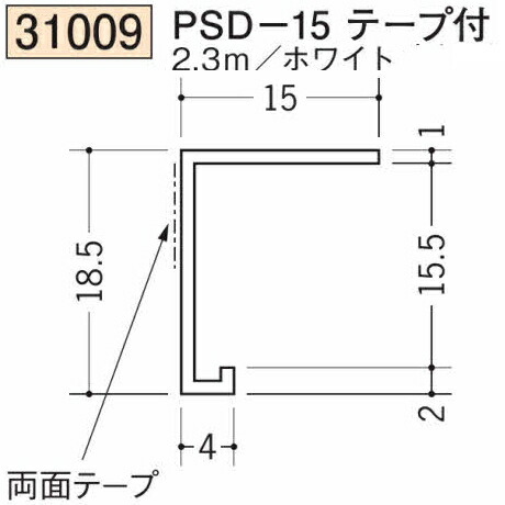創建 SOKEN 31009-2.3m ビニール ペ下地材 ドア廻り・天 井 廻り PSD-15テープ付 長さ:2.3m ホワイト 個数:1個 法人様限定・個人様不可