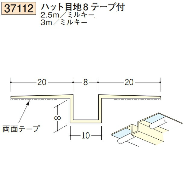 創建 SOKEN 37112-2.5m ビニール 下地材 壁面・天井面 ハット目地8テープ付 長さ:2.5m ミルキー 個数:1個 法人様限定・個人様不可