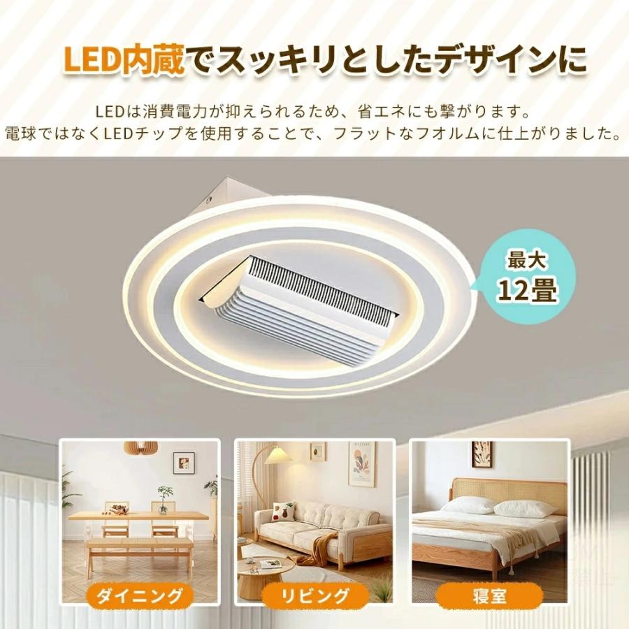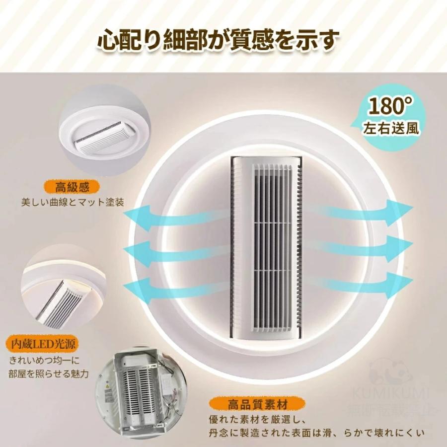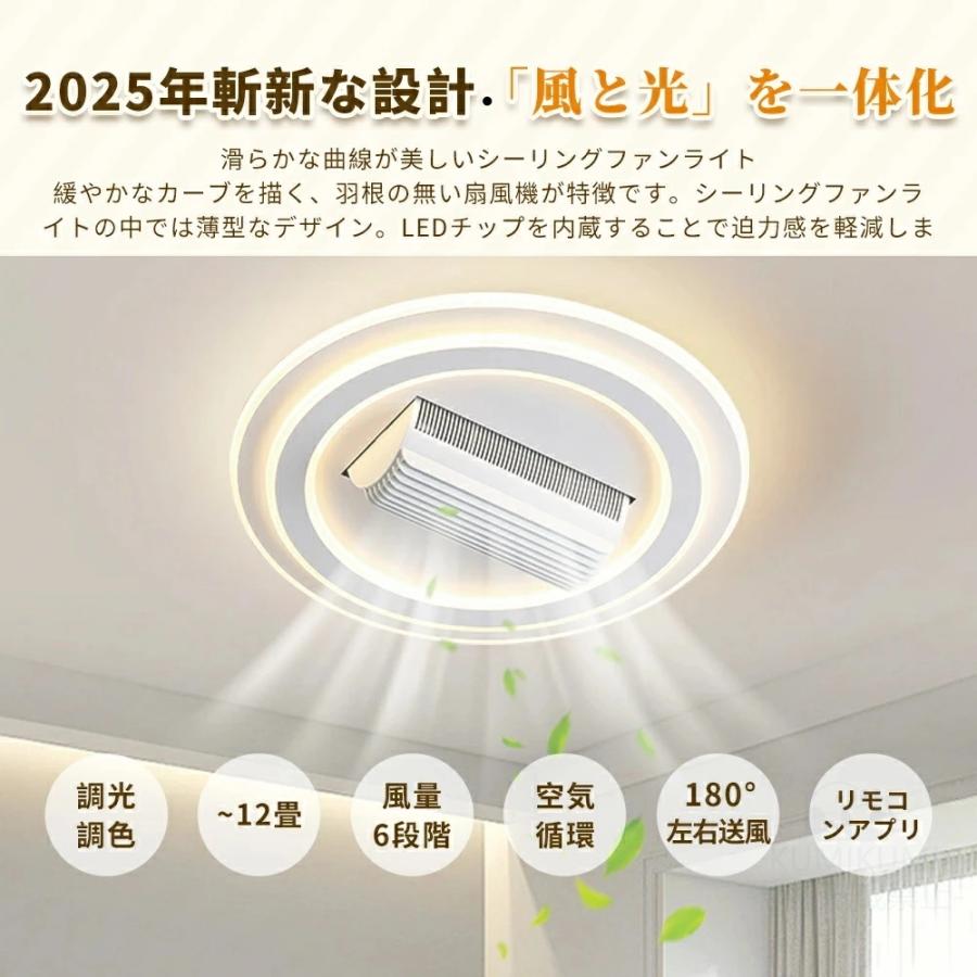 シーリングファン シーリングファンライト led 羽根なし10畳 12畳 調光調色 DCモーター 180°首振り 逆回転機能 リモコン付 APP対応 天井照明 扇風機 和室 静音
