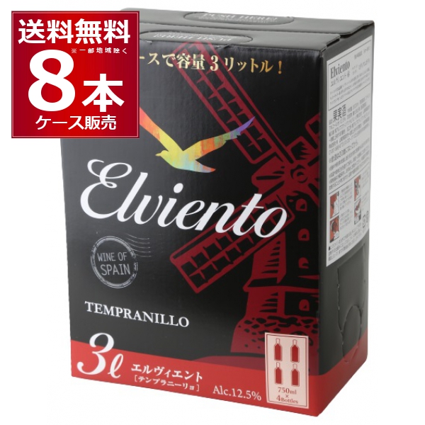 特価 ワイン wine 箱ワイン エルヴィエント テンプラニリョ 赤 BIB 3L×8箱(2ケース)
