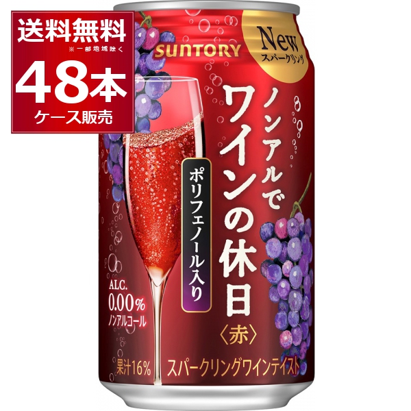 ノンアルワイン サントリー ノンアルでワインの休日 赤 果汁18% 350ml×48本(2ケース)