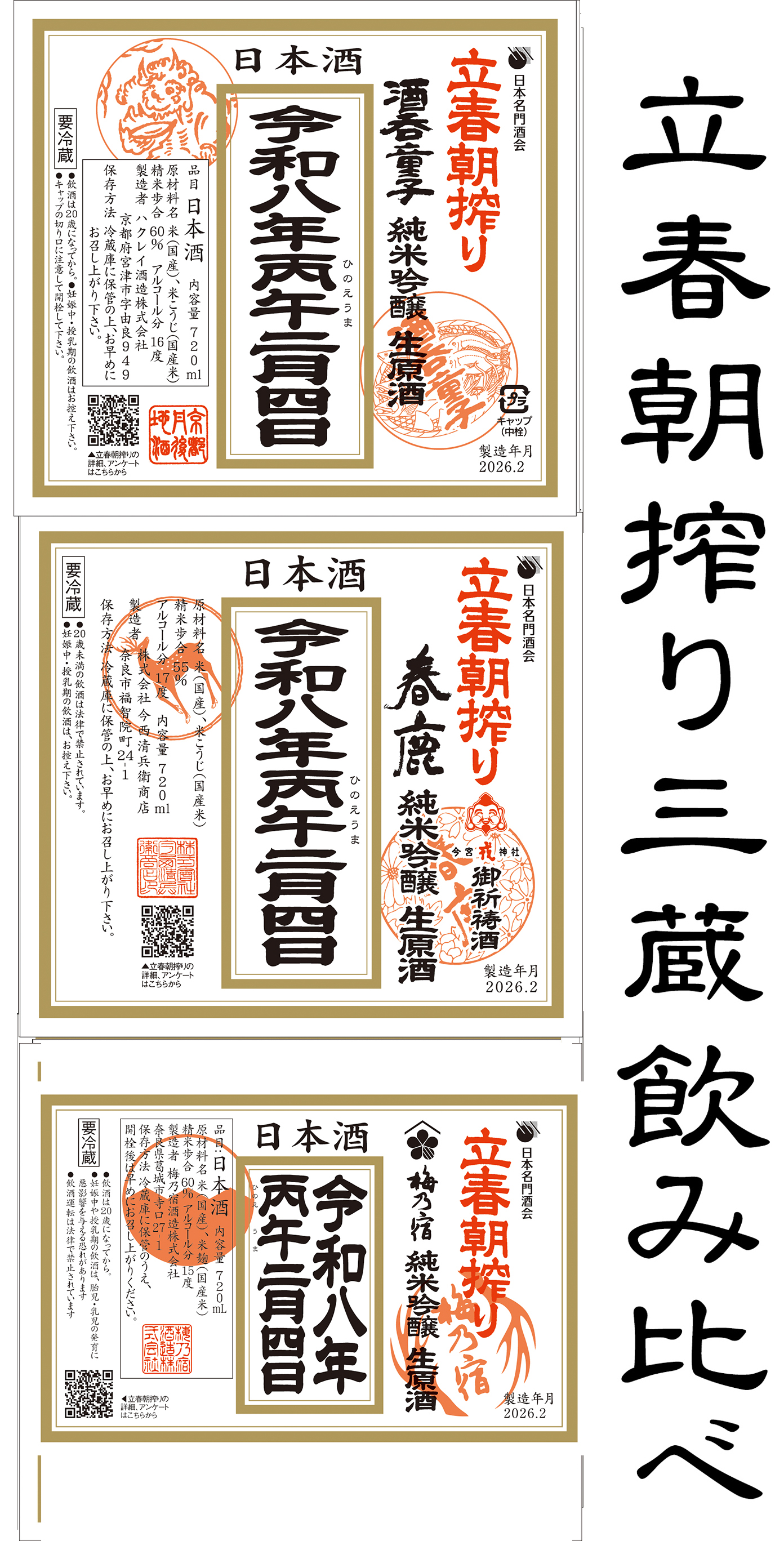立春朝搾り 三蔵のみ比べ 720ml各1本×3 2026年 春鹿 梅乃宿 酒呑童子