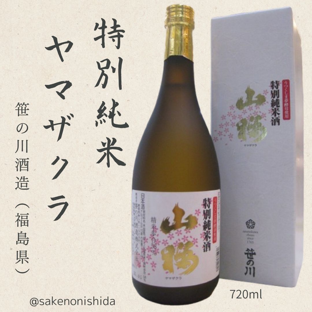 福島県:笹の川酒造 うつくしま夢酵母使用 特別純米酒 山桜(やまざくら) 720ml瓶 [日本酒 爽やかな酸と甘み]