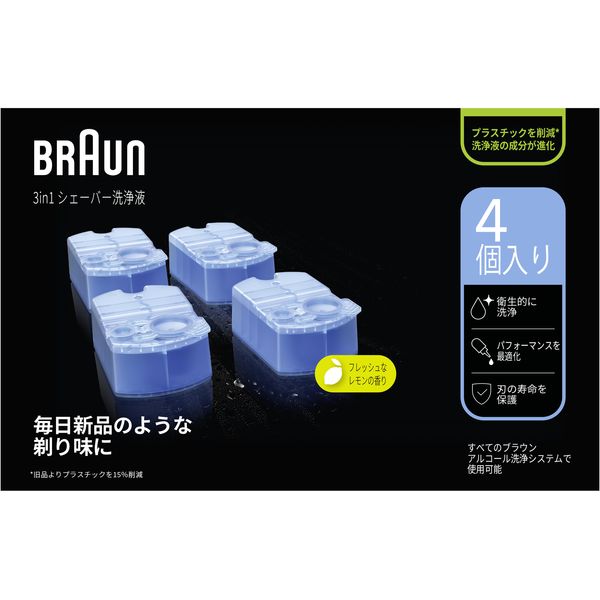 除菌までできる、アルコール洗浄はブラウンだけ。専用洗浄液カートリッジの4個パックです。