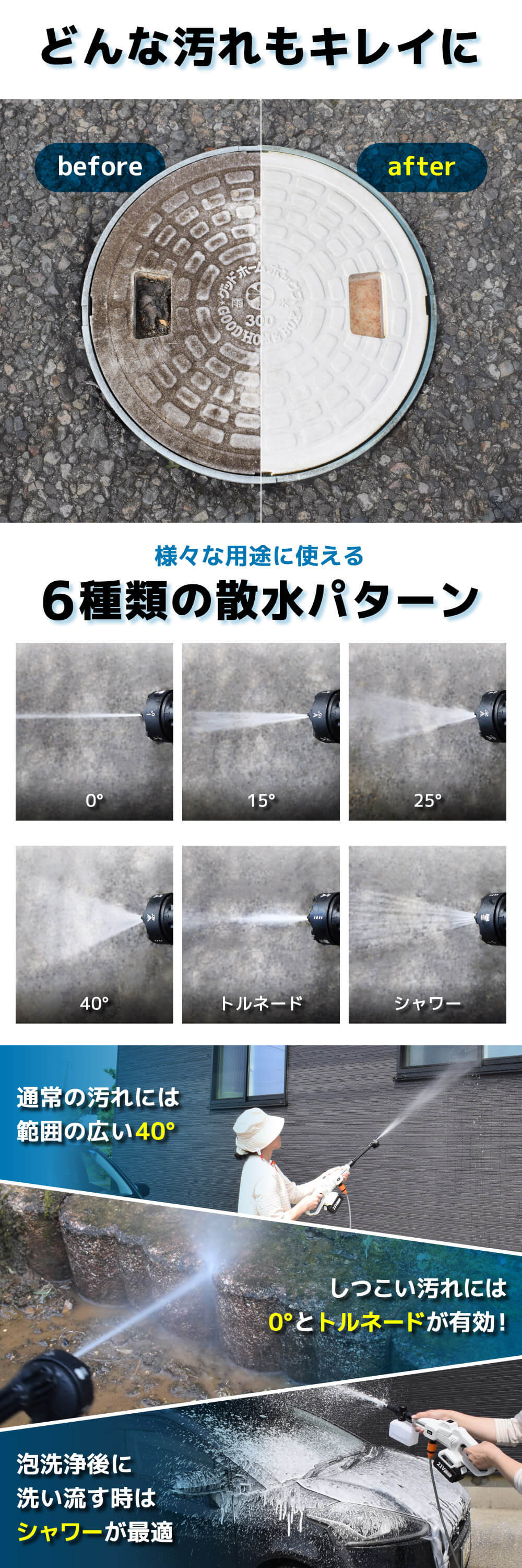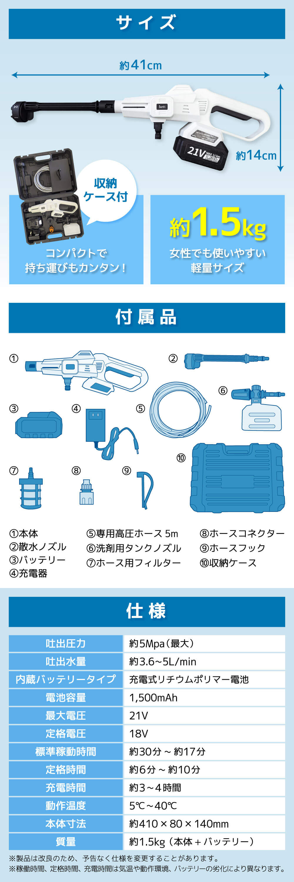 高圧洗浄機 コードレス 充電式 foret CPW-21 ハンディウォッシャー 洗車 洗車機 洗車用品 高圧 大掃除 充電式コードレス高圧洗浄機
