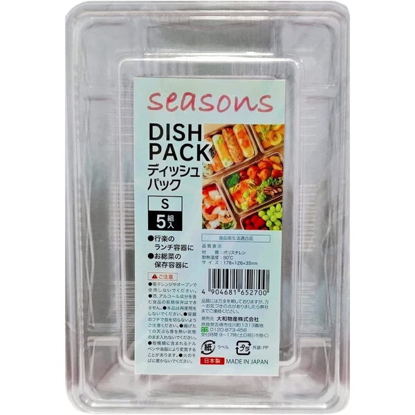 ★ 行楽などのお弁当に最適な使い捨て容器。お惣菜の保存容器としても使用可能。酒、アルコール成分を含む食品の長期保存不可。揚げたての天ぷら等を熱い状態のまま入れない。柑橘類に含まれるテルペンや油脂により変質することがある。火のそばに置かないこと。* 1枚あたりサイズ: (約)幅17.8×奥行12.6×高さ3.5cm* 材質: ポリスチレン* 耐熱温度: 80°C