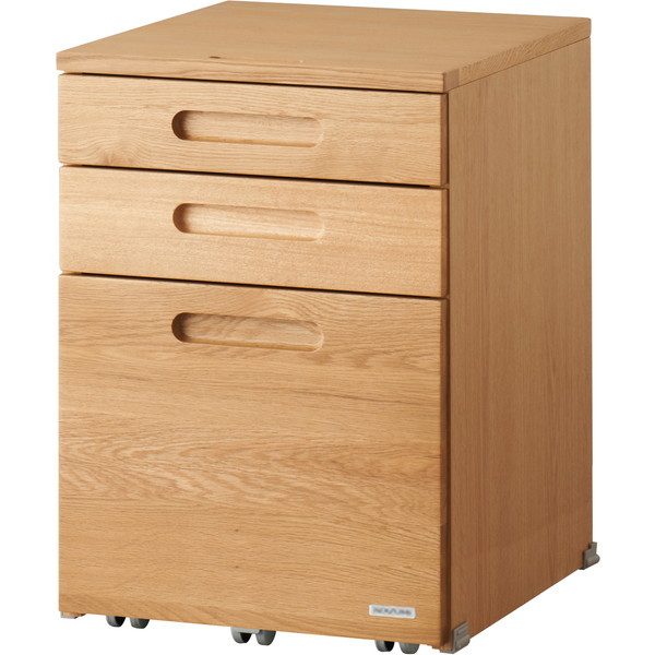 ★ 天板には高級感のあるナラ材(突板)を使用しています。★ 飽きのこないシンプルなデザインで永くご使用いただけます。★ 引出しは全段フルオープンレールを使用しており、奥の物も簡単に取り出せます。* 商品サイズ:W415×D495×H585mm* 重量:約23.5kg* 素材・材質:天板/ナラ突板、前板/ナラ、側板/プリント化粧合板* 3段引き引出し:全段フルオープンレール使用* その他:上段引出しには木製ペントレー付き、キャスター付き* 生産国:中国