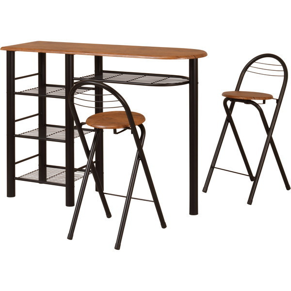 ★ ダメージ加工の入った塩ビシートの天板・座面がお部屋の雰囲気を向上させます。★ 簡易ダイニングテーブル、パソコンなどの簡易作業テーブルとしても使えます。【スペック】* 梱包重量(kg):20* テーブル:W1200×D400×H880mm* チェア:W360×D435×H810mm(SH580mm)脚:スチール(φ50.8mm)粉体塗装* 座板:MDF(15mm厚)塩ビシート真空成型* 梱包:組立