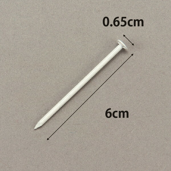 ★ グラウンドテープ15×100と20×100には約500個★ 50×50には1430個の穴がある。★ 専用釘を必要数お求めください。* サイズ:直径0.25cm×長さ6cm×釘頭0.65cm* 重量:1.2kg/箱* 材質:スチール* 500本入* 白焼付塗装* 日本製