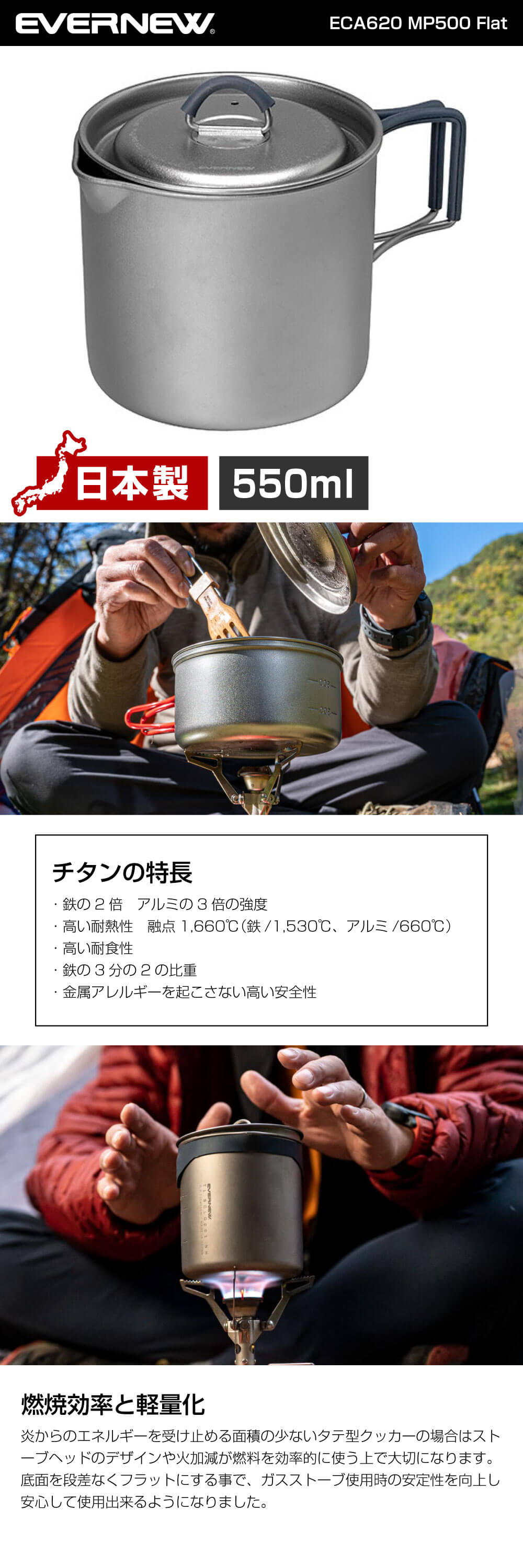 ★ 人気の「Ti Mug pot 500」の底がフラットなモデル。底面をフラットにすることで、ガスストーブ使用時の安定性を向上し、安心して使用出来るようになりました。* サイズ:径9.7cm×深さ8.7cm* 容量:550ml(目盛付き)* 質量:79g(シリコンチューブ含む)* 素材:純チタン(国内製造)