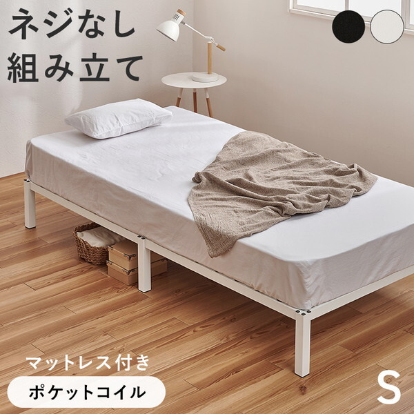萩原 MB-5224S-WH3302 マットレス付 シングルベッド メーカー直送