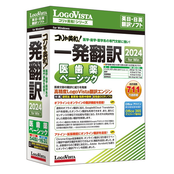 ★ 医療文献の翻訳に適した翻訳ソフトで、高精度に翻訳します。* メディア:DVD-ROM* 対応OS:Windows 11(64bit)/ 10(32・64bit)日本語版* 動作CPU:搭載OSが推奨するCPU以上* 動作メモリ:搭載OSが推奨するメモリ容量以上* 動作HDD容量:1.2GB以上* その他動作条件:インストール後にインターネットなどでのライセンス認証が必要。