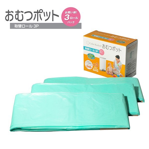 日本育児 5102813001 おむつポット替えロール カラーコーベル 3個パック