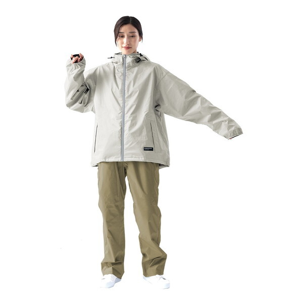 ★ ゆったりシルエットで雨でも晴でも着用できるおしゃれなレインスーツです。★ 耐水圧10000mm、透湿度10000g/m2・24hr* 適応身長: 150〜160cm* 適応胸囲: 78〜86cm* 適応胴囲: 60〜68cm* 実寸: 着丈70cm、胸回り114cm、裄丈85.5cm、股上28cm、股下70cm* 素材: [表地]ポリエステル100%(TUラミネート)、[裏地]ポリエステル100%(メッシュ)* 生産国: 中国