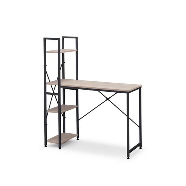 ★ 収納性抜群でリモートワークにも最適なラック付きデスクです。★ 4段階のラックにファイルや小物、Wi-Fiルーターなどを収納でき、デスクを有効に活用できます。★ 脚底にアジャスターがついているので、がたつきを防止します。★ 天板には耐水性・耐熱性に優れたパーティクルボードを使用、汚れてもさっと拭けるのでお手入れが簡単です。* 耐荷重:デスク天板:30kgf、 棚板:(1枚あたり)8kgf* 生産国:中国