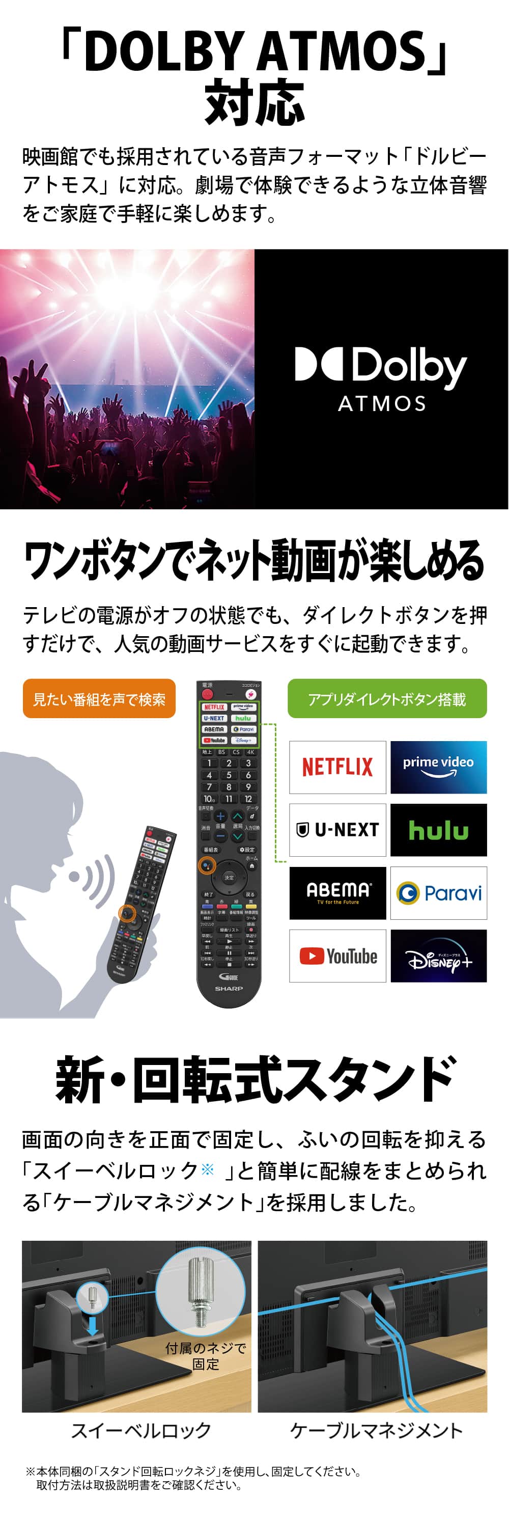 映画館でも採用されている音声フォーマット「ドルビーアトモス」に対応。