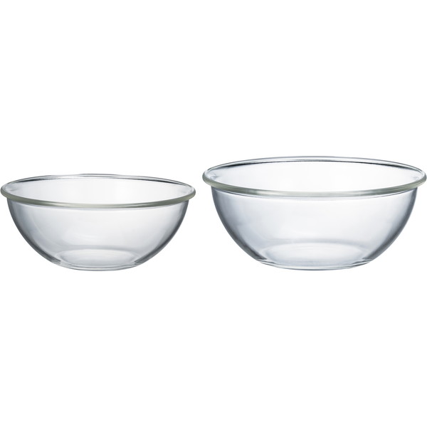 ★ レンジ調理・ミキシング用ボウル・食器としも使える便利な耐熱ガラス製浅型ボウル、お買い得2個セット。