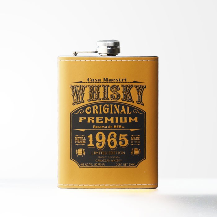 蒸留酒を入れるための水筒「フラスクボトル」に、4〜5年熟成のカナディアンウイスキーを詰め込んだ、キャンプやバーベキューなどアウトドアの場面にもピッタリな商品です。