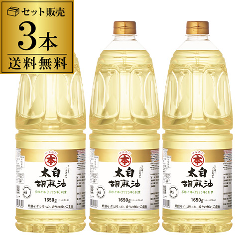 3/21〜22限定P3倍 マルホン 太白胡麻油 1650g 3本 太白 ごま油 胡麻油 竹本油脂 ペット 大容量 健康オイル 八幡
