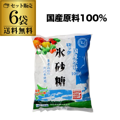 (1袋あたり720円) 中日本氷糖 国産原料 ロック 1kg ×6袋 北海道 てんさい糖 氷砂糖 国産原料100% 馬印 虎S