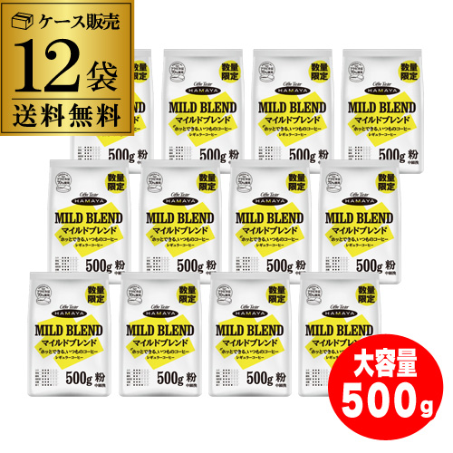 (数量限定 在庫限り)ハマヤ マイルドブレンド 500g 12袋 ケース販売 レギュラーコーヒー 粉 大容量 お徳用 中細挽 アラビカ豆 ブラジル産 ベトナム産 GLY