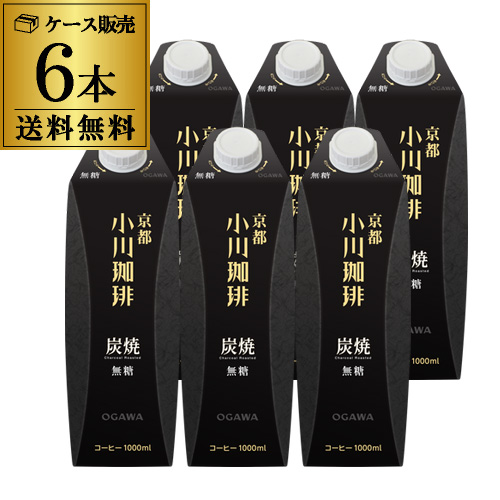 3/21〜22限定P3倍 京都 小川珈琲 炭焼珈琲 無糖 1L 1000ml 紙パック 6本 1ケース リキッドコーヒー アイスコーヒー RSL