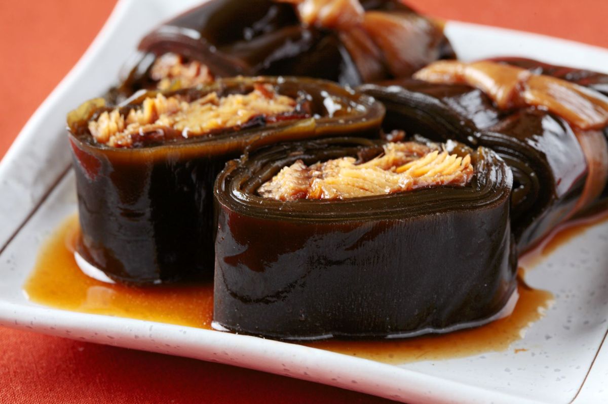 北海道紋別産のにしんと根室産1等級の厚葉昆布を栃木県産干瓢で巻きあげました。厚葉昆布を使用する事によりタレを良く吸い込み昆布の味とタレの味を堪能できます。また、紋別産にしんは脂乗りが良くにしん本来の旨味を堪能出来ます。砂糖・醤油・みりんのみで味付け。直火炊きで製造。