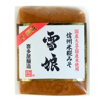 ポイント消化にも。長生き味噌汁健康法が話題になり、人気が出ている信州味噌。赤みそ白みそ長野県国産100%。最高の味噌を目指し原料、製法すべてにこだわったのが信州手造り米こうじみそ「雪娘」の生い立ちです。 麹にする寸前に精米した長野県産1等新米のみの手造り糀をたっぷり十割使用、厳選した長野県産大豆を用い天然熟成させたこだわりの麹味噌です。