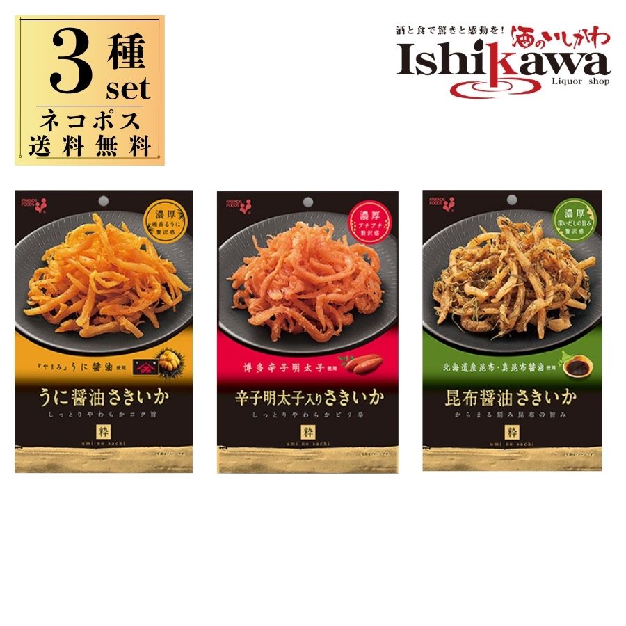 【ネコポス送料無料】井上食品 さきいか 3種セット(うに醤油さきいか・辛子明太子入りさきいか・昆布醤油さきいか)おつまみ 珍味 同梱不可 日時指定不可