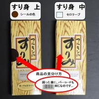 原料魚は、すり身の最高素材とされているワラズカの厳選した身を使用してます。上は中より身の中心側を使用して、より弾力、色、艶が増しております。