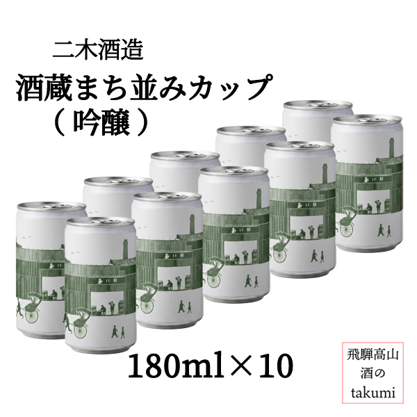 【送料無料】二木酒造 酒蔵まち並みカップ酒 吟醸 緑ラベル 180ml缶×10本 カップ酒 アルミ缶 飛騨高山 氷室 玉の井 晩酌 家飲み 冷酒 パーティ お土産